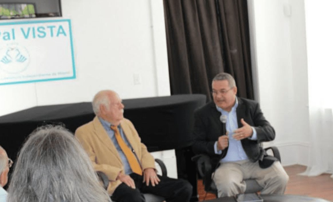 Los escritores José Lorenzo Fuentes y Luis de la Paz en el I Festival Vista de Miami (2014)